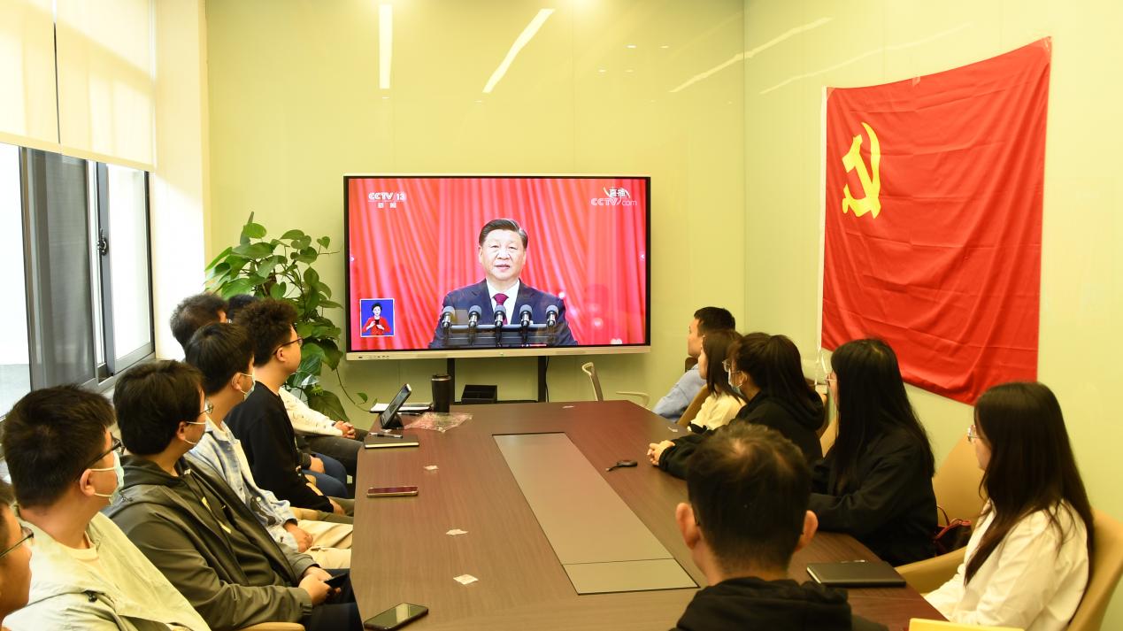习近平同志的报告鼓舞人心,听者入耳入心。报告过程中,研究院的党员同志们边听边记,不时报以热烈的掌声。观看直播后,大家纷纷表示,要认真学习贯彻落实党的二十大报告精神,更加扎实地把党中央的各项决策部署落到实处,作为一线科研人员,要牢记科技强国使命,努力服务国家高水平科技自立自强,攻坚克难、勇攀高峰,让党旗在科研一线高高飘扬,将论文写在祖国大地上。