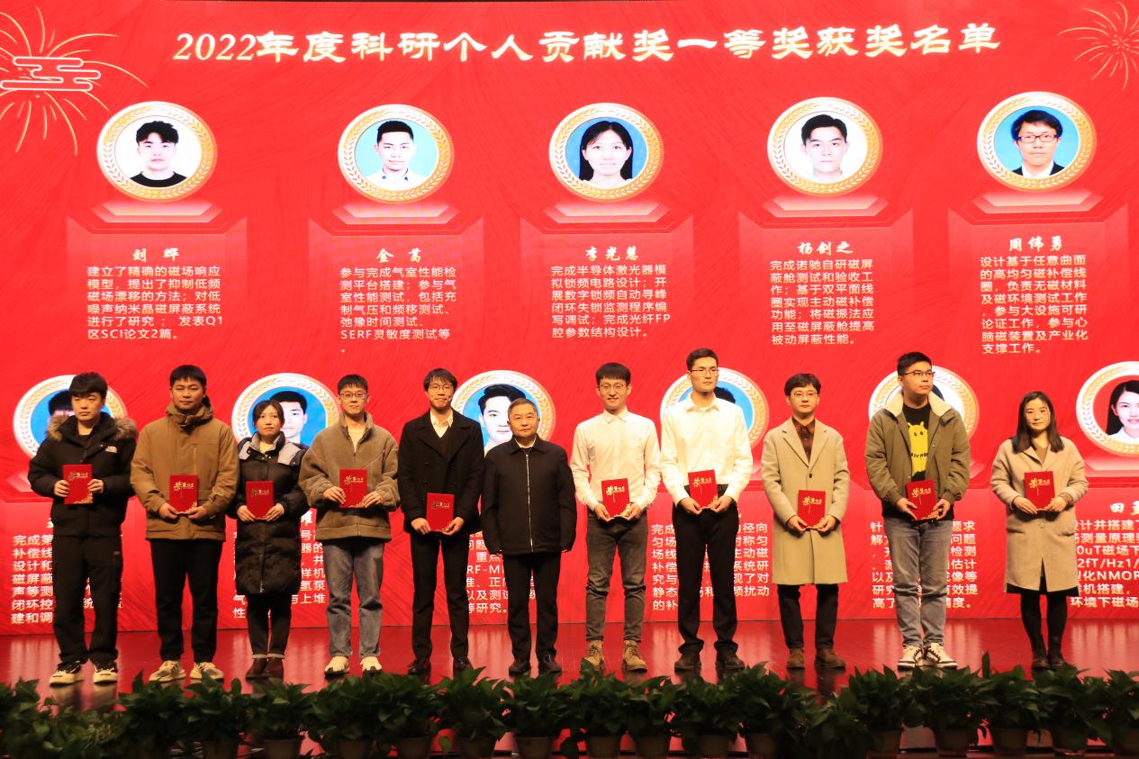 大科学装置研究院经过各中心总结评比推荐,评比出一二三等科研贡献个人奖以及2022年度团队优秀科研攻关小组奖,以表彰团队和个人过去一年的辛勤付出。共有64位博士研究生荣获科研个人贡献奖三等奖,46位博士研究生荣获科研个人贡献奖二等奖,22位博士研究生荣获科研个人贡献奖一等奖,核磁共振陀螺、芯片化原子磁强计、原子自旋陀螺仪、地磁下原子磁强计、 迷你磁屏蔽舱、齐鲁医院心磁小组获得团队优秀科研攻关小组奖。