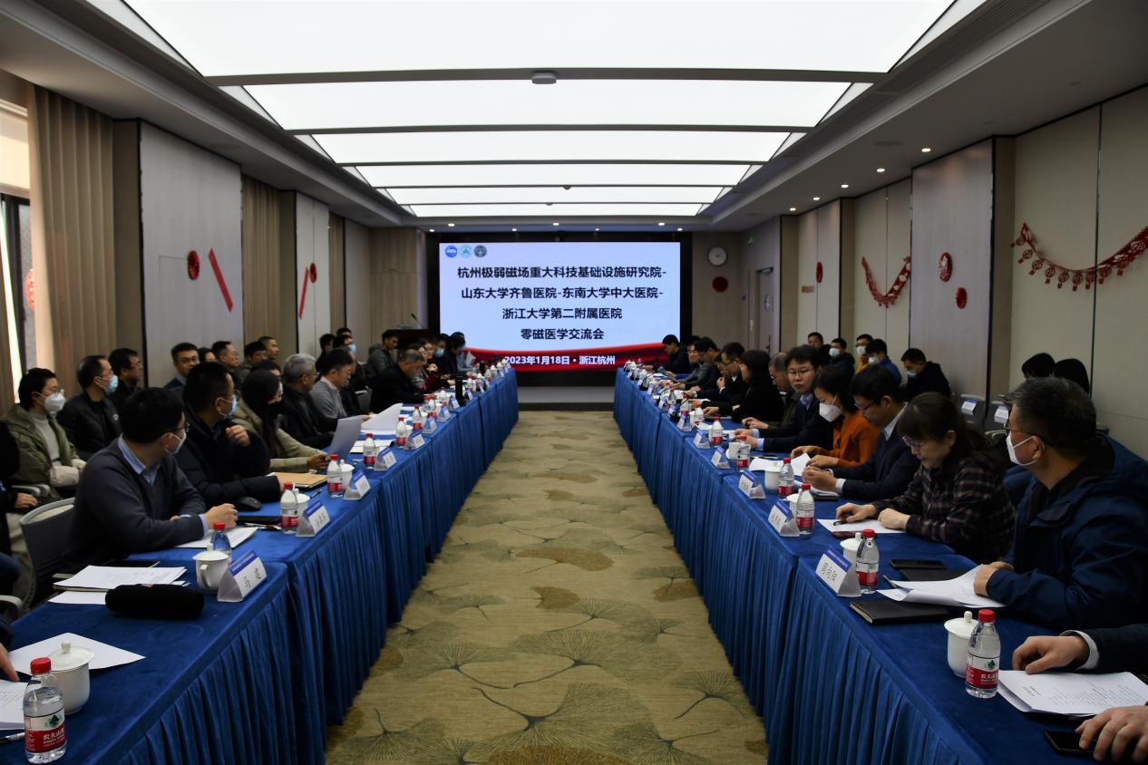 1月18日下午,杭州极弱磁场重大科技基础设施研究院—山东大学齐鲁医院—东南大学中大医院—浙江大学第二附属医院举行零磁医学交流会。