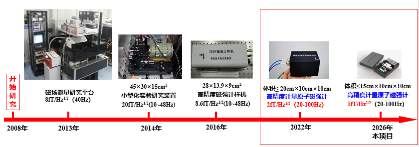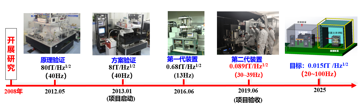 中心超高灵敏原子自旋惯性测量科学装置与仪器技术的研究主要经历了三个阶段: